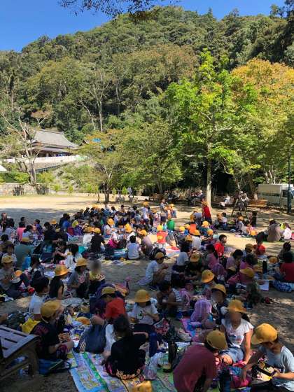 しっかり歩いた後は、待ちに待ったお弁当の時間です。みんな、うれしそうですよ。