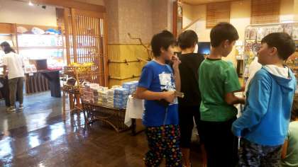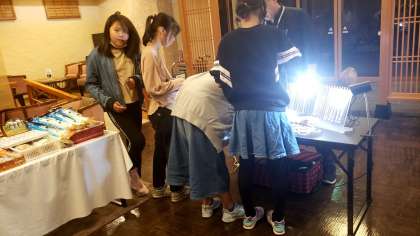 夕食後は、お土産を買う組、入浴組、部屋待機組に分かれての活動です。お土産選びには、限られた予算なので、相当悩んでいる様子です。