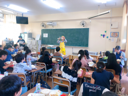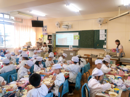 担任の先生が魚の上手な食べ方をスライドを見せながら指導したり、栄養教諭が骨の模型を見せたりして、子どもたちは、上手にさんまを食べることができました。