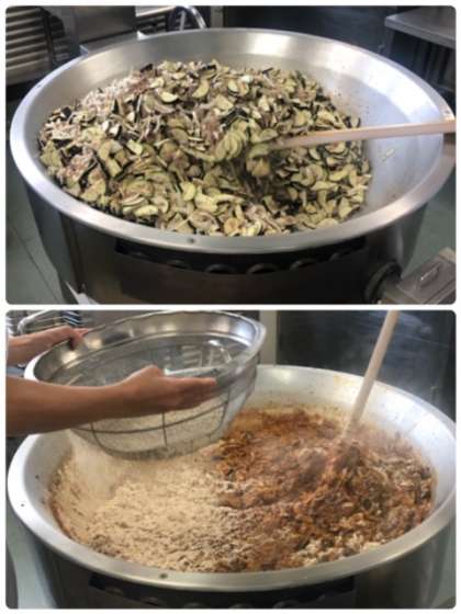10月31日の給食の「なすのミートグラタン」ができるまで