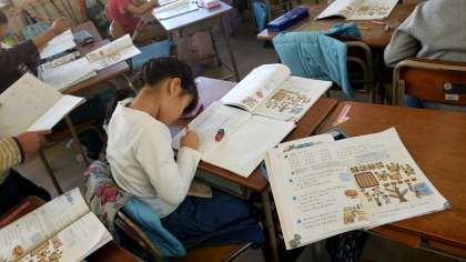 かけ算の学習中。2年生の間に、確実にスラスラと、九九が言えるように頑張りましょう!