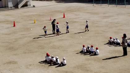 1組は運動場でボール運動です。運動をするには最適な気象状況で、子ども達は元気に活動していました。