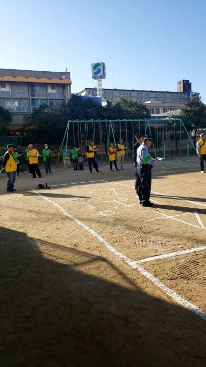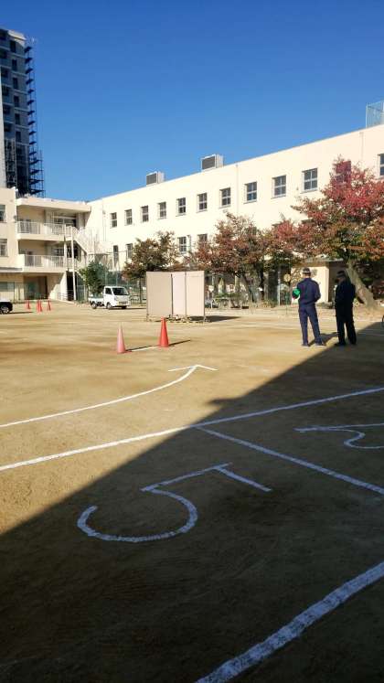 今日は小学校のグランドと講堂で自転車教室が行われます