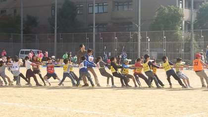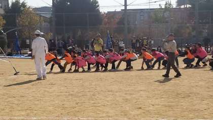 午前最後の競技は、綱引きです。力を合わせて頑張ろう!