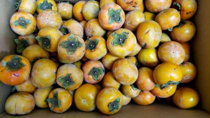画像は柿と夏みかん。どちらも、新高小学校の校庭で採れました。