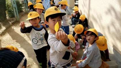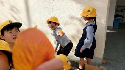 色とりどりに色づいたたくさんの葉のうち、一番お気に入りの葉を見せてくれました!