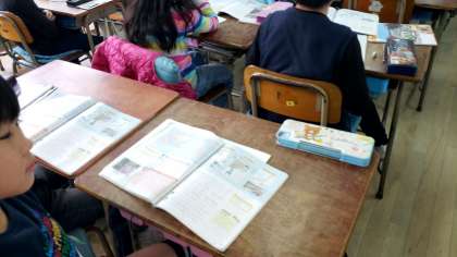 大阪市の生産業についての学習です。子どもたちにとって身近な工業製品である消しゴムが私たちが暮らす大阪市で生産されています。
