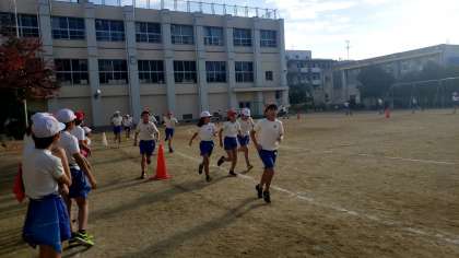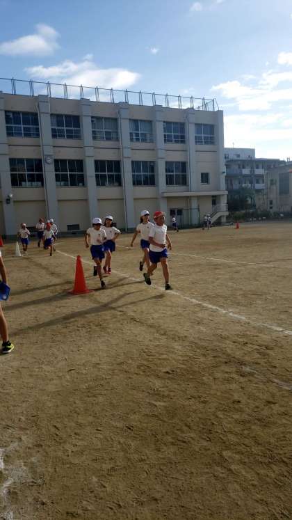 来週は駆け足大会です。大会に向けて運動場を走りました。