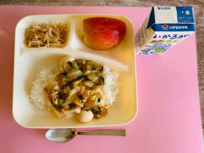 うずら卵のアレルギー個別対応献立です。