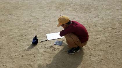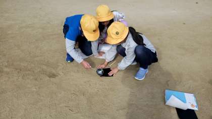 太陽の光にはどのような力があるのかを実験中です。安全に十分気をつけて実験をおこなっています。