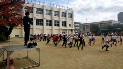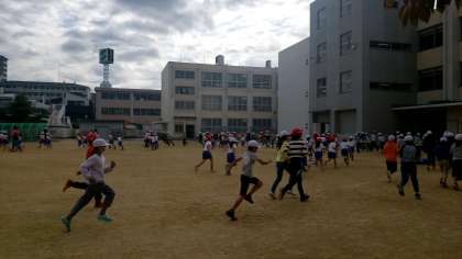 今日は1年生と4年生のペアです。1年生にとってははじめての駆け足週間ですが、みんな張り切っています!4年生も1年生に負けじと頑張っています!