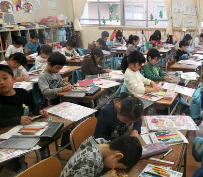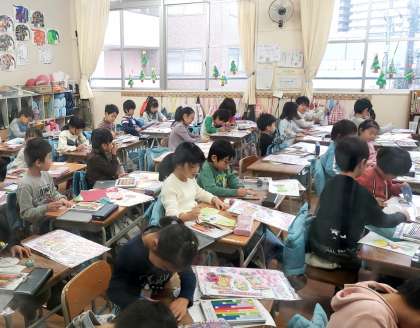 となりの人や班の人の作品からもヒントを得ながら作品作りを進めています。