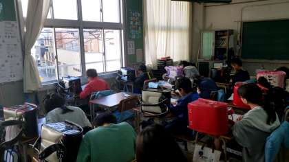 1時間目は国語です。 みんな真剣に取り組んでいます。