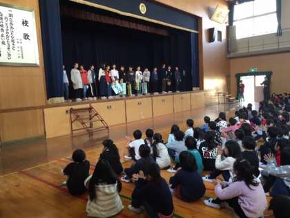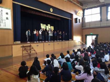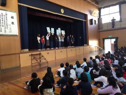 インフルエンザや感染性胃腸炎の予防をテーマに集会で発表しました。