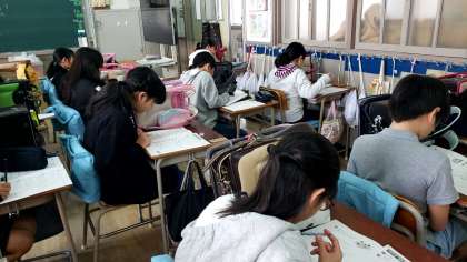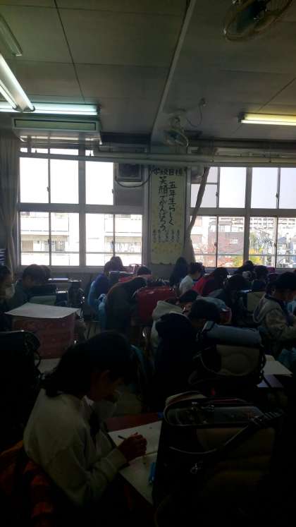2日目の今日も 集中力をとぎらすことなく 真剣にテストに取り組んでいました。さすが、五年生。頼もしい限りです。