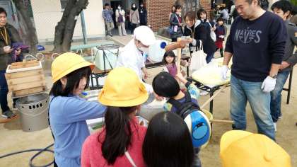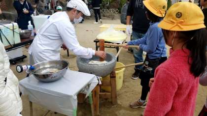 初めてお餅をつく子どもたちも多いみたいで、苦戦しています