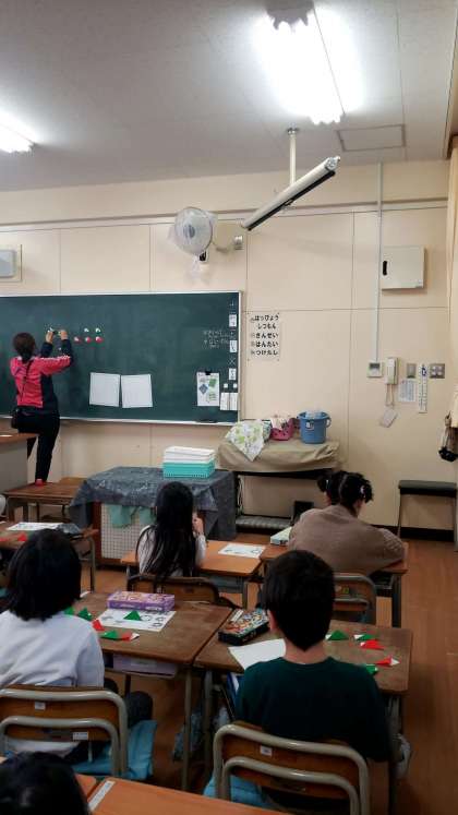 クリスマスに向けて、赤と緑の色紙を使ってリースを作っています