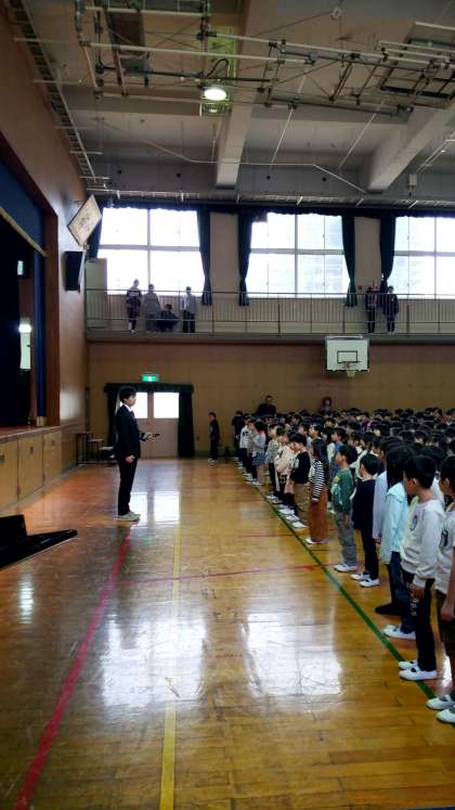 校長先生からは今年の目標をたてましようというお話がありました。続いて、生活指導の先生からは、3学期も安全安心な学校生活を送ろうというお話でした。