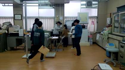 下の画像は各クラスをまわって点検の仕事を終えて戻ってきた保健委員会の皆さんです。ご苦労様でした。