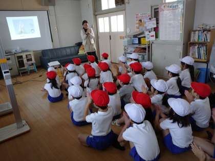 正しい手の洗い方を身につける為に、「てあらいのうた」を教えて頂きました。