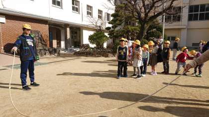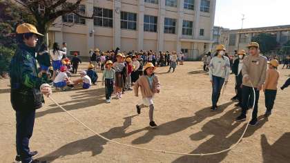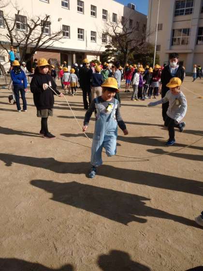 低学年もうまく跳べるように、高学年の皆さんが上手に縄を回していました。