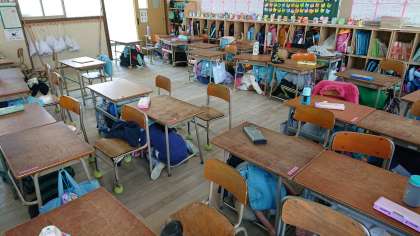 地震はいつ起こるか分かりません。いつでも命を守る行動がとれるようになることを目標に訓練を行いました。今回は、清掃時間の設定です。