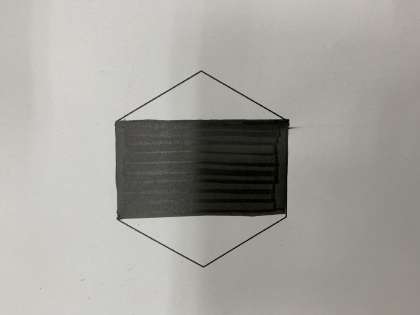 六角形に1本の直線を引いて三角形を2つにしてください。