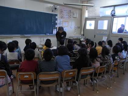 今月15日の土曜公開授業では、他の地域や小学校などでも活動されている「グループいっすんぼうし」の方々に、各教室でストーリーテリング(本を見ないでお話をする)や本の読み語りをしていただきました。