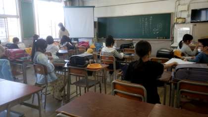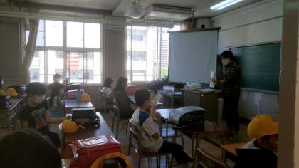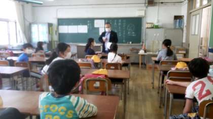 5年生の教室です。少しずつ緊張感もとけてきたようすです。笑い声にあふれていました。