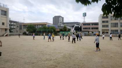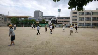 先生たちも一緒に 子ども達と、運動場でリフレッシュ!
