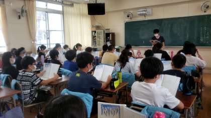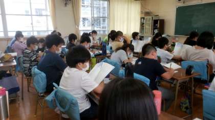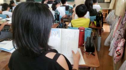 物語文「風切るつばさ」です。まずは、先生が師範読みです。