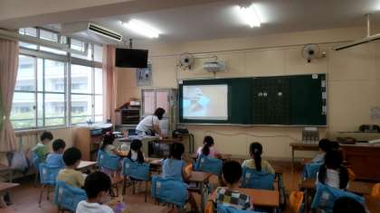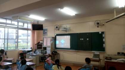 折り紙を使って、紫陽花を作っているところ。今の季節にピッタリの作品です。