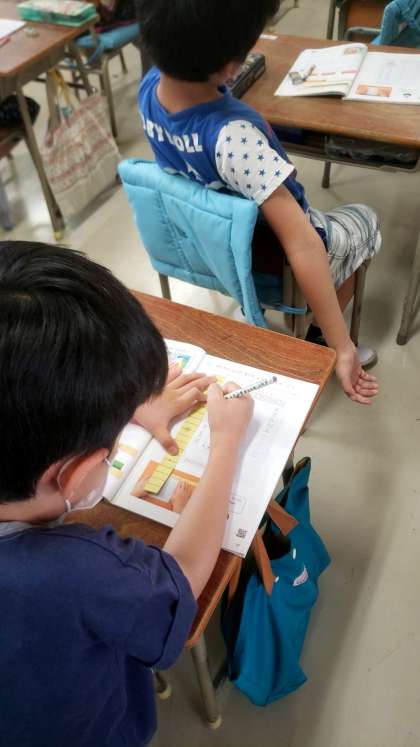 2組も、さしを使って長さを測る学習中です。今日の学習で測るものによっては、ピッタリとセンチメートルで表すことができないものもあるということが分かりました。