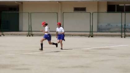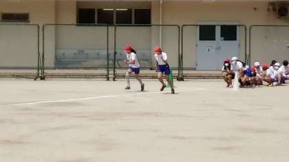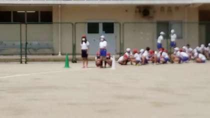 50メートル走のタイム計測中。暑い中ですが、全力で走っている姿はとても格好良かったです!