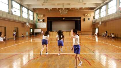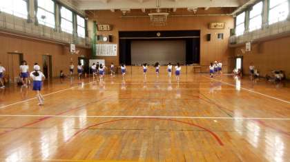 スポーツテストの一つ、シャトルランを講堂で行いました。持久力が求められる運動です。