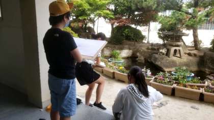 学習池を写生中です。どこかしら美術家の雰囲気がただよっていますね!