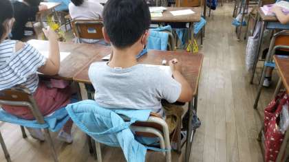 漢字10問書き取りテスト中です。見直しもしっかりとできたかな?