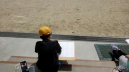 子ども達と一緒に先生も校舎の写生に取り組んでいました。