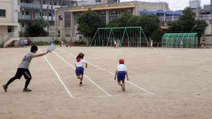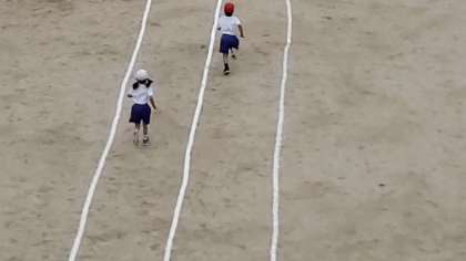 1年生も50メートル走にチャレンジです。小学校生活初めての50メートル走。