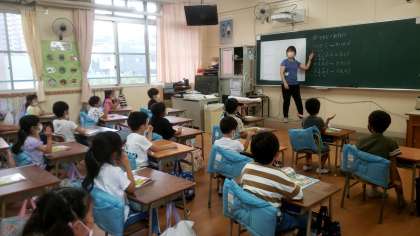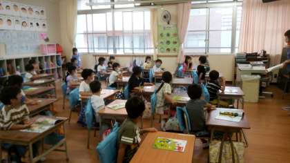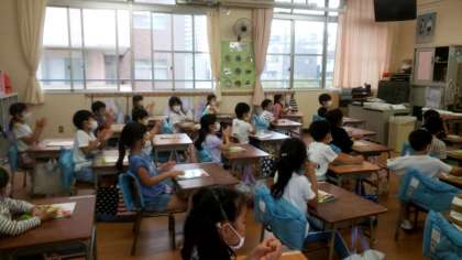 先生の合図に合わせて、みんなでリズム打ちをしています♪