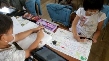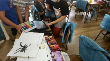 写真を撮影する等タブレットを活用して、調べたことをまとめています。