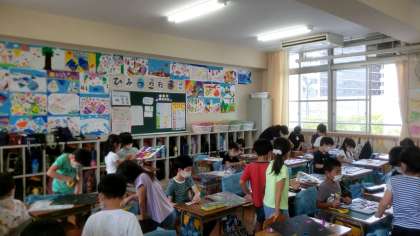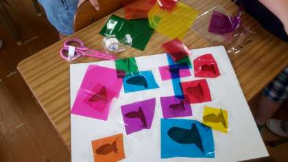 段ボールを上手にくりぬいて、ステンドグラスの出来上がり。