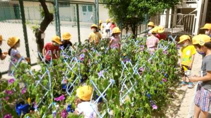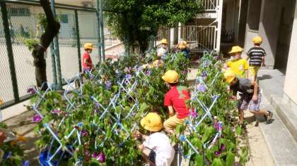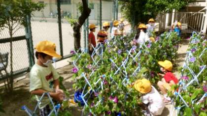 少し萎れてきた朝顔の様子を見て、「元気がないので、お水をたくさんあげよう!」という声が聞こえてきました。よく観察してそして判断しています。