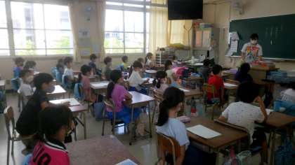 熱中症および感染症対策として、放送による式を行いました。校長先生からは、「さんかくを頑張ろう!」のお話がありました。詳しくは、学校だより9月号をご覧ください。