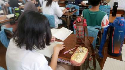 2組でも3組と同じ詩を学習中。連ごとに分けて、作者が伝えたいことをみんなで話し合っています。