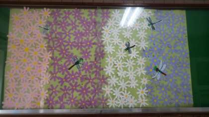 9月に入り、正門の玄関掲示を入れ替えました。秋といえば、トンボ。でも、まだまだ残暑厳しい中では、秋を実感できないのが正直なところです…