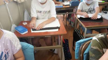 裁縫の実習中です。5年生の時には、エプロンを作りました。そして、6年生では、ナップザックを作ります。普段の生活でも使える丈夫で素敵なナップザックを作りましょう!
