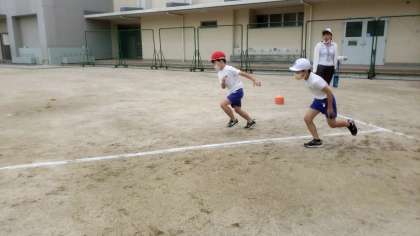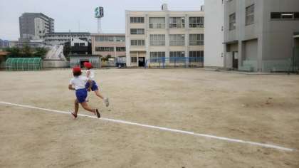 運動会に向けて、かけっこの練習中です。1年生の時よりも、速く走れるようになったかな?