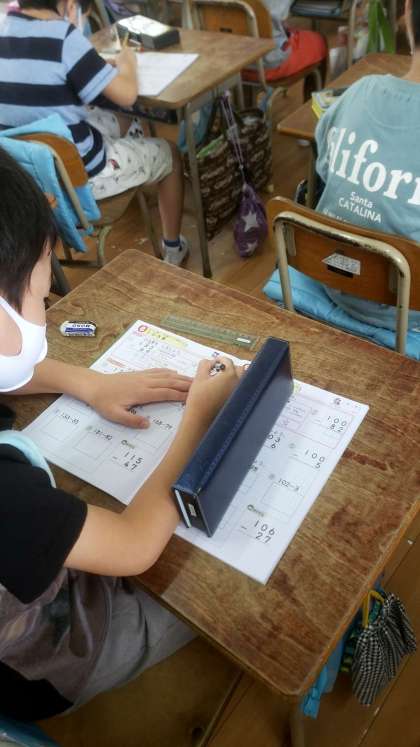 3組ではドリルを活用して、ひっ算の技能の定着を図っています。