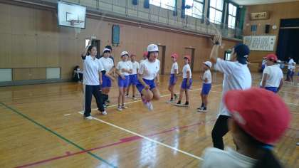 最初、ゲストティーチャーのパフォーマンスを見て、「おー」と、驚くばかりで、「無理無理あんなんできない」と、腰を引いた感じでしたが、丁寧な教え方が、子どもたちにしっかりと伝わり、なんと全員が連続とびをすることができるようになりました。